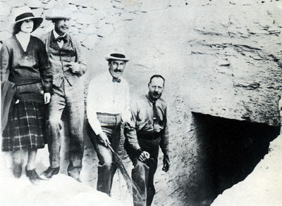 | Howard Carter et Lord Carnarvon à l'entrée de la tombe de Tout Ankh Amon |