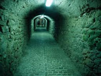 Les murs étaient solides mais revêtus de cannelures. Le tunnel n'était pas droit, je dirais plutôt en forme de tire-bouchon.